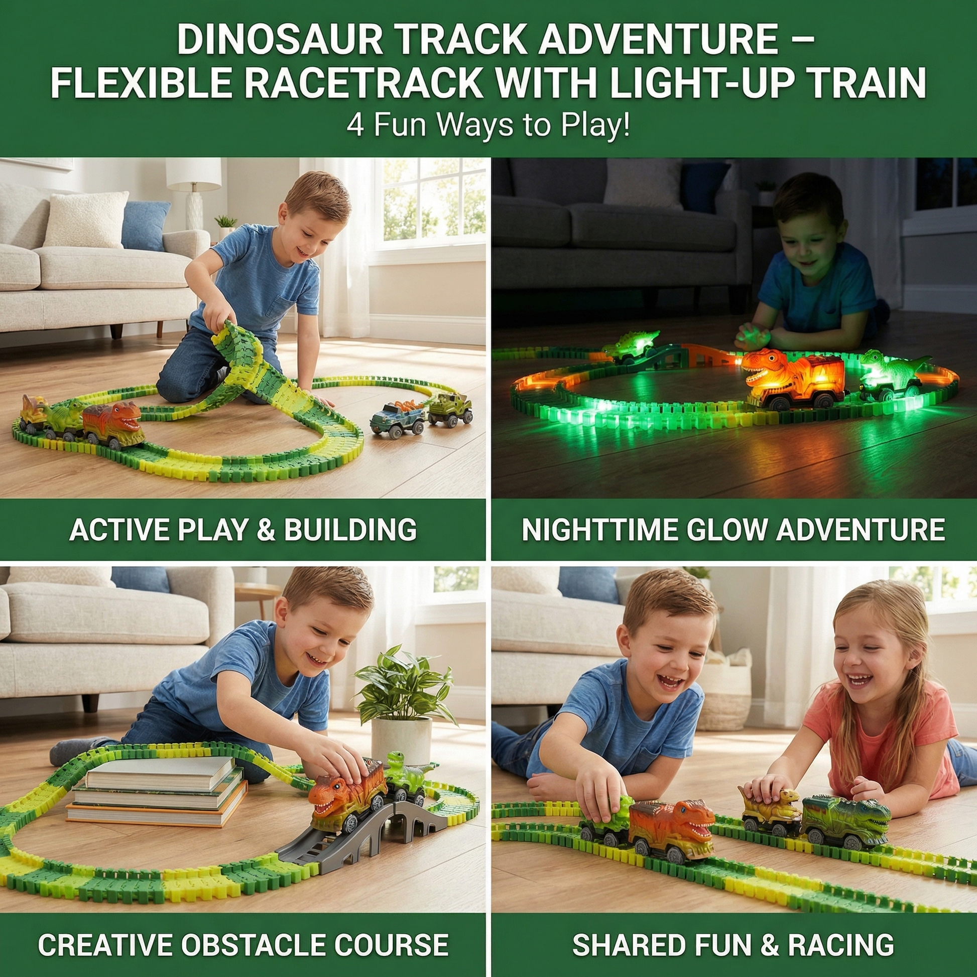 This set is incredible! My kids can create endless dinosaur adventures with flexible tracks, the light-up train adds magic, and it sparks creativity, problem-solving, and hours of nonstop imaginative fun.