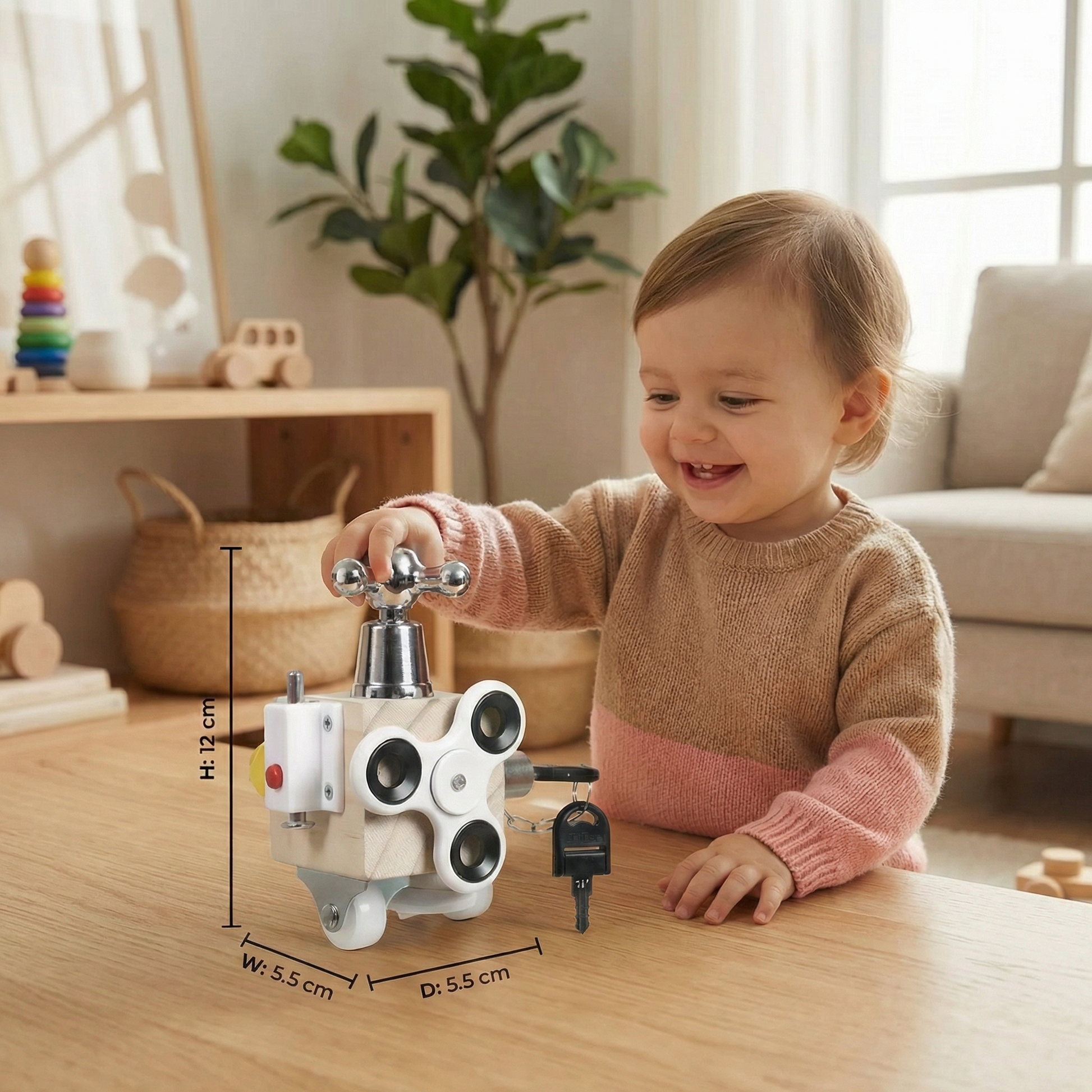Meet the MagicCube – Montessori Busy Cube, a hands-on activity cube designed to entertain, educate, and stimulate your toddler’s mind. Packed with interactive features like shape sorters, gears, sliders, and switches, it turns playtime into a fun learning adventure.