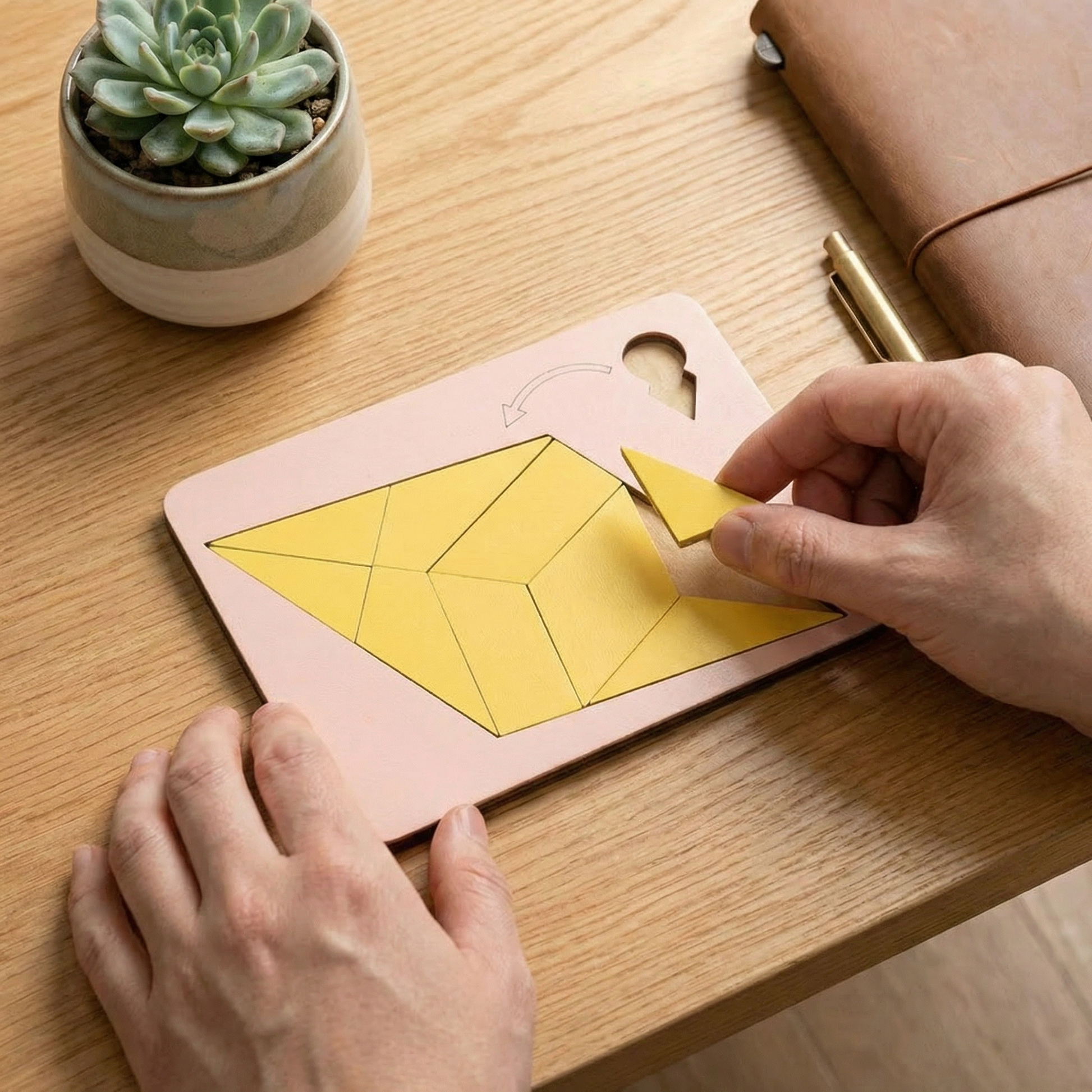 The Wooden Tangram Puzzle Game is the perfect solution — a timeless brain-teasing game that combines problem-solving, spatial awareness, and creativity. With seven durable wooden pieces, players can follow challenge cards or invent their own designs, making learning fun for all ages.